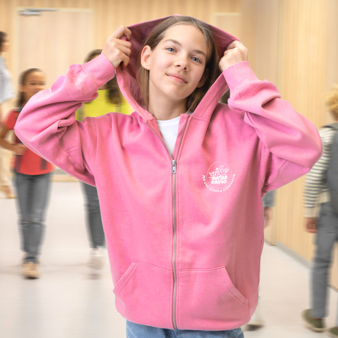 Questa felpa con zip unisex è perfetta per accompagnare i bambini nelle loro attività quotidiane, sia a scuola che nel tempo libero. Pratica, morbida e personalizzabile, garantisce comfort e un tocco unico grazie al logo SENZA ZAINO lato cuore e alla possibilità di aggiungere dettagli esclusivi.