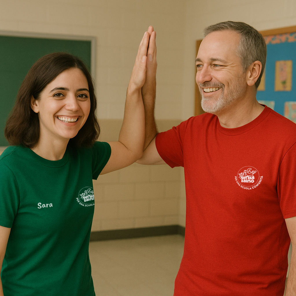Personalizzazione: Aggiungi il nome e/o il logo dell’istituto per rendere la T-shirt unica.